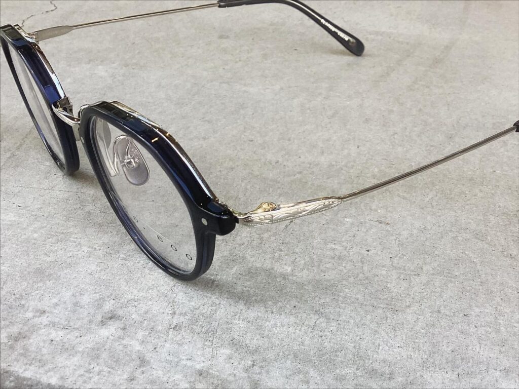 レンズサイズはそのままにブリッジ幅を1ミリ狭くし、ブリッジやテンプルに彫金を施してあります