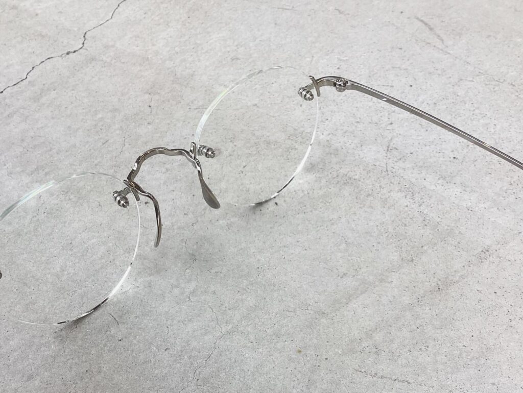 元々のMANRAY自体がブリッジとノーズパットが一体整形されたスッキリしたデザインなのですが、リムレスになってよりシンプルでクリーンな印象に