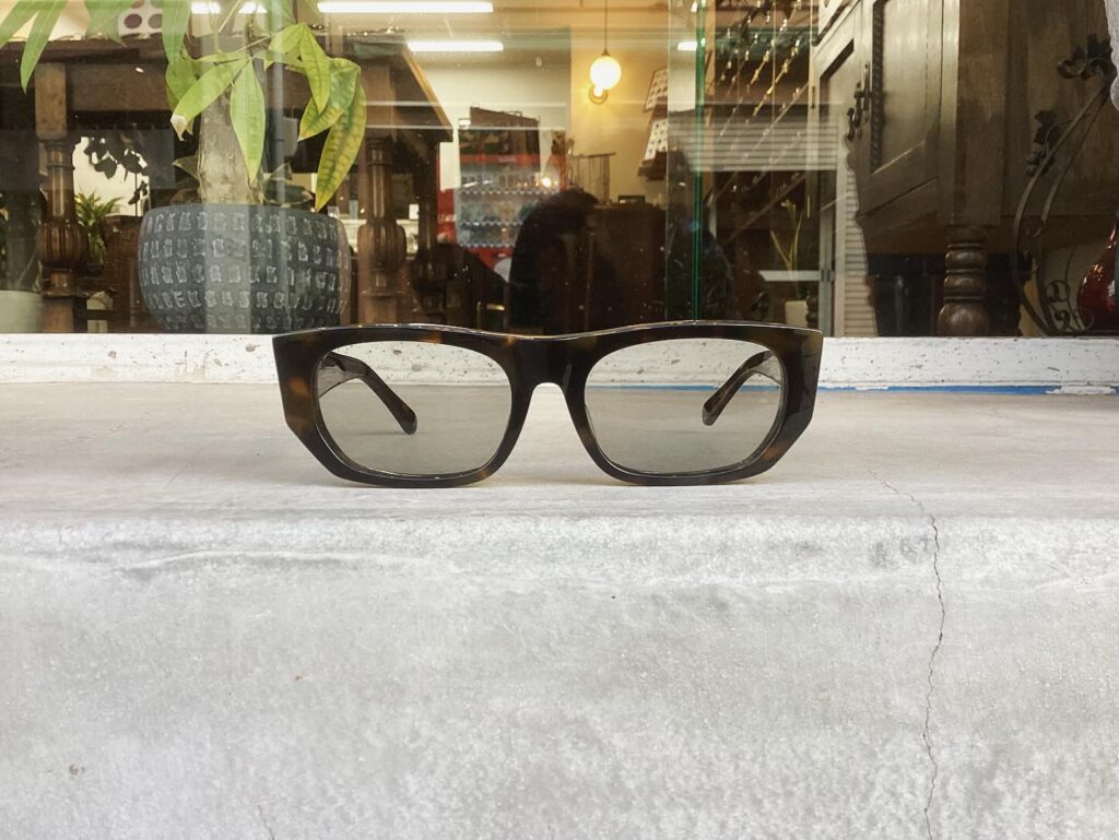 天地浅めのスクエアシェイプに太めのテンプルを合わせたインパクトのあるデザイン