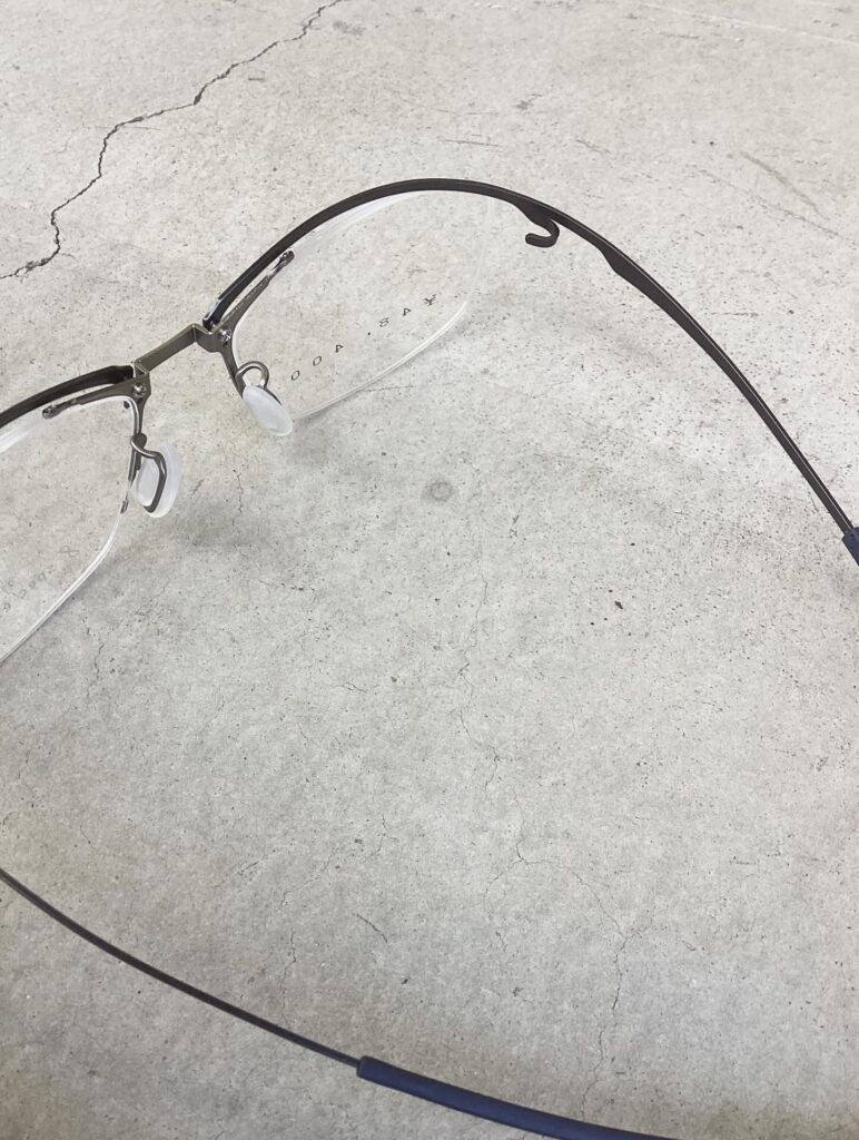 メタルが弾性がありますので、横の圧迫感はほぼほぼなくてかけ心地は抜群でございます